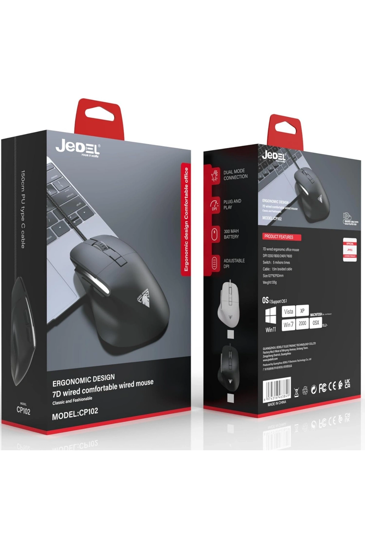 Jedel CP102 Siyah Professional 7 Butonlu RGB Işıklı Ergonomik Kablolu Mouse