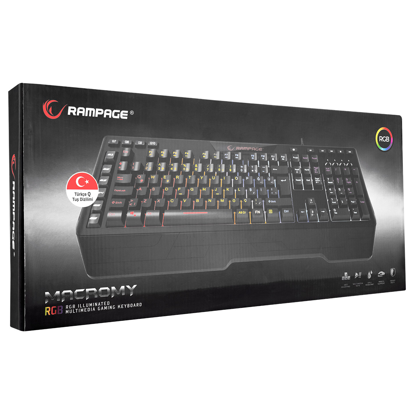 Rampage MACROMY KB-R33 Siyah RGB Aydınlatmalı Q MAKROLU Multimedia Oyuncu Klavyesi