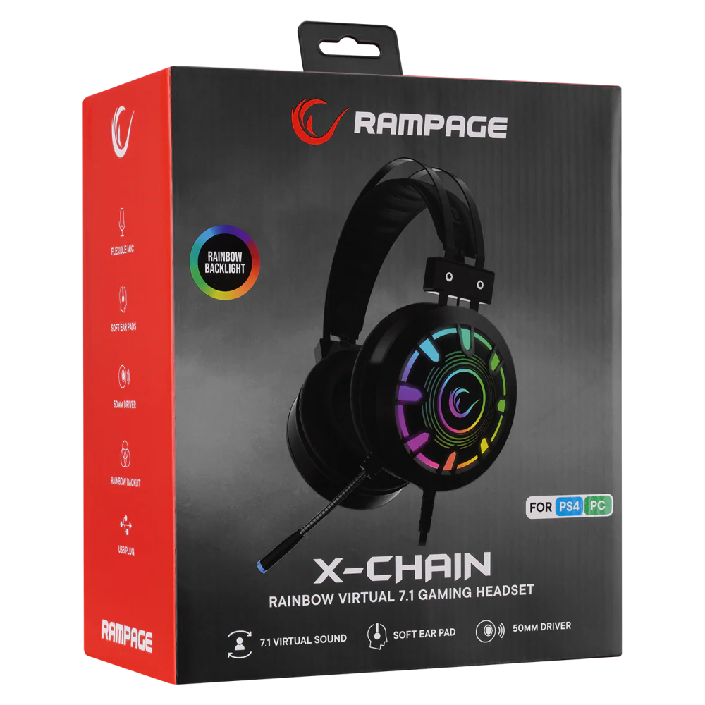 Rampage RM-K59 X-CHAIN Siyah USB 7.1 Rainbow Ledli Gaming Mikrofonlu Oyuncu Kulaklığı