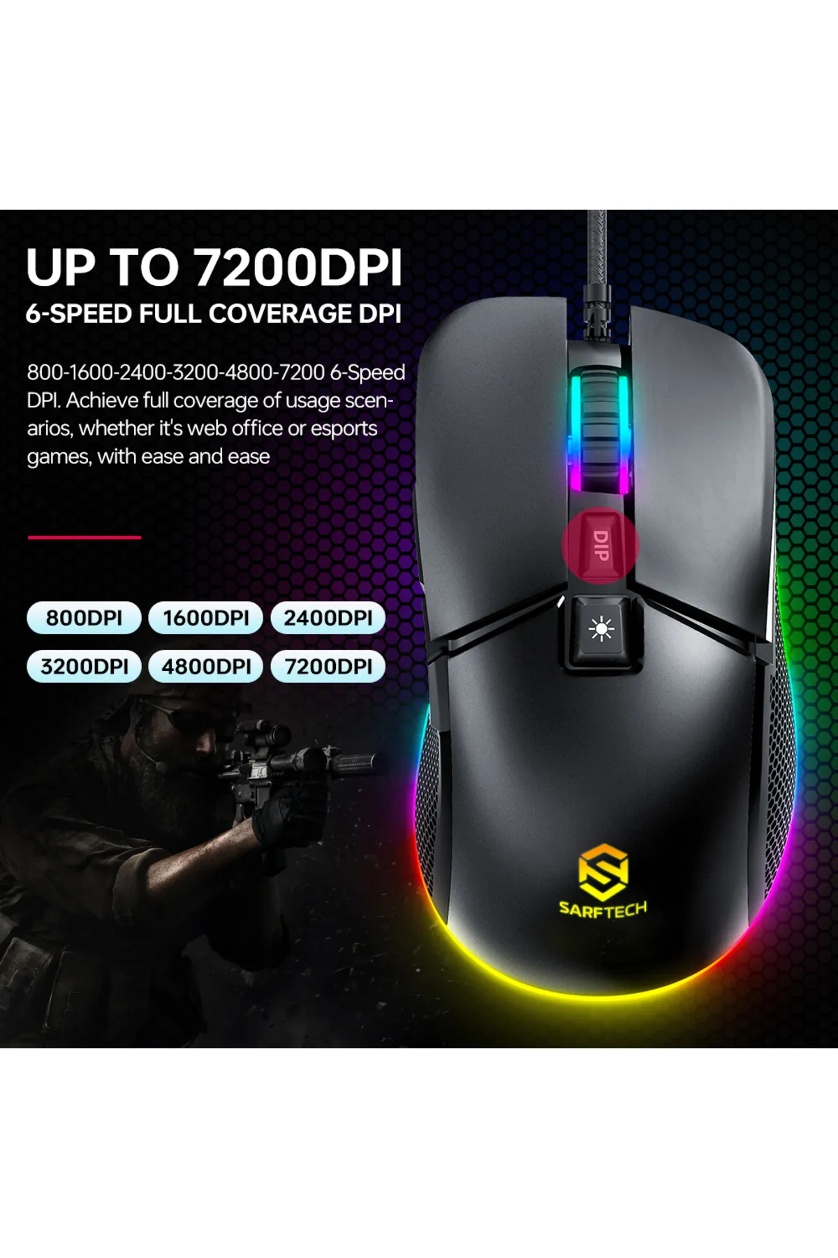 Siyah Rgb 7 Tuşlu Drag Click 7.200Dpi Makrolu Yazılım App Destekli Gaming Oyuncu Mouse